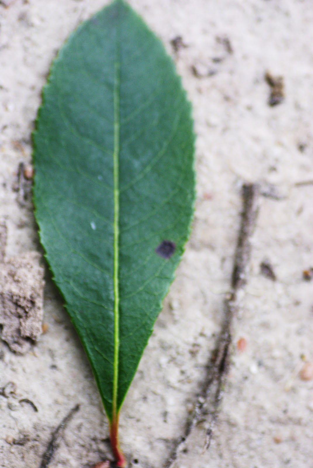Un detalle de la hoja de color verde mate en el envés y verde oscuro y lustroso en el haz. Caracterizadas por ser perennes, simples y algo coriáceas, oblongolanceoladas y casi enteras o aserradas.